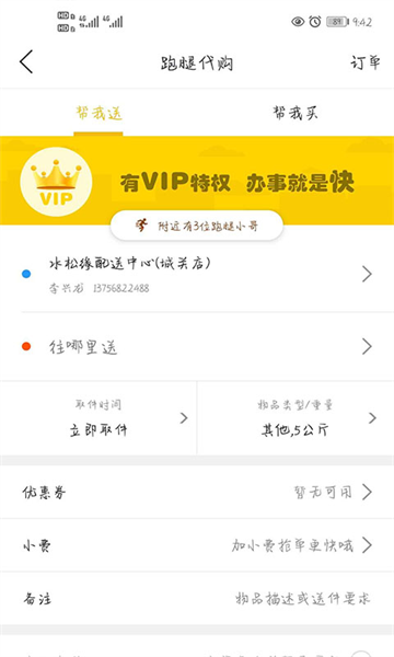 3、专人送货上门,外卖上门、跑腿上门、生鲜配送和绿植配送都支持。