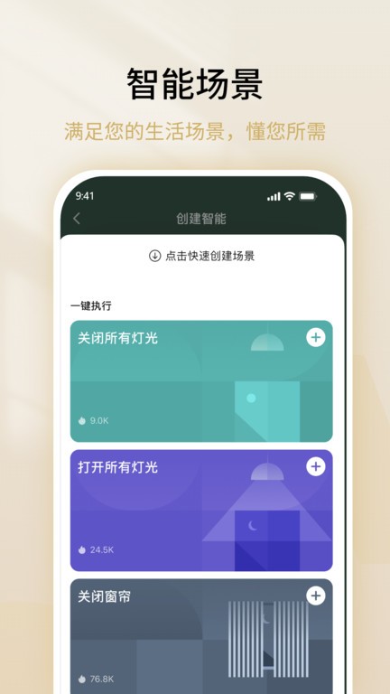 可根据自己的使用习惯,设置个性化场景及设备联动,家居生活更智慧