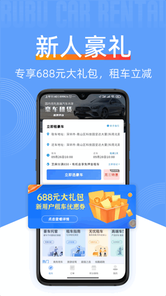 2、租车福利,新客688元大礼包,立享折扣优惠;