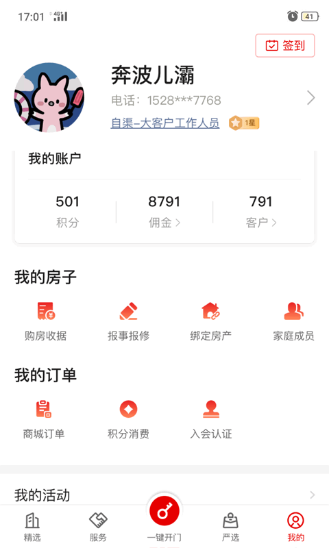 5、打开个人中心,查看自己的账户信息,了解自己的房产详情,在线管理家庭成员