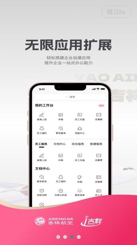 为吉祥航空员工打造的掌上移动办公平台。涵盖了超多功能,大家可以高效的展开工作,随时轻松的操作。