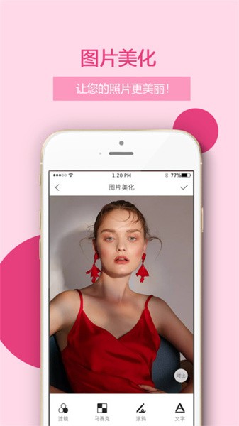 图片美化:支持图片裁剪/添加文字/画笔/贴纸/美白/滤镜/旋转等多种操作;