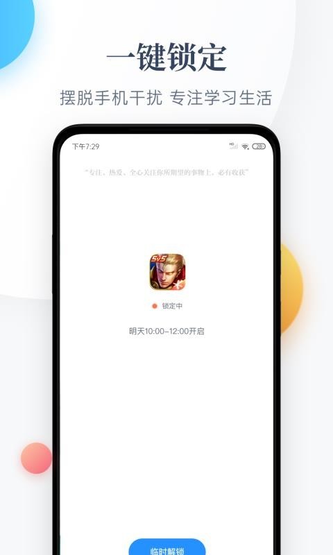 自由设置应用锁定时长与时段,控制玩手机时间,留出更多的时间去做更有意义的事情。