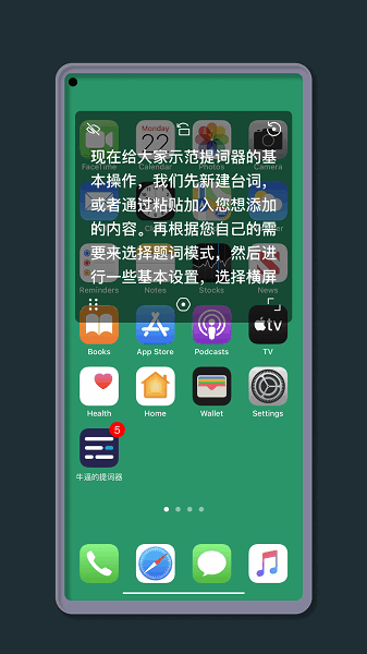 提词面板支持悬浮手机桌面,可以和任意相机、视频、、会议、网校软件搭配使用提词功能!