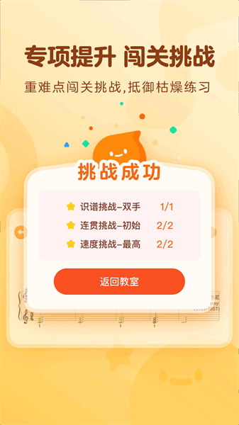 重难点练习专区,先单手再双手,练习速度逐级递增。闯关挑战进行科学的演奏节奏训练让你的钢琴演奏更流畅。