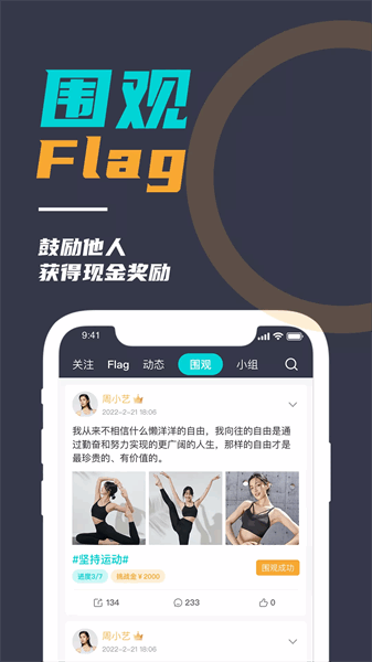 3、随时在这里发起自己的打卡目标,更加轻松的朝着目标前进。
