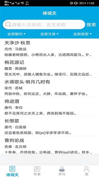 这个古诗词学习助手app真的超级方便!里面收录了从先秦到现代的13万多篇古诗词,还有文言文和曲,简直是诗词爱好者的宝库。不管是唐诗、宋词还是全宋词,都能找到。最棒的是它支持智能搜索,按字或句都能快速定位,省时又高效。