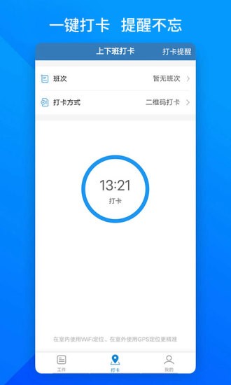 上班班app是一款专业的考勤软件,用户可以一键签到、写日志、请假调休等,非常的方便实用,还能够自定义时间表,提醒上班打卡签到,是您工作的好帮手。