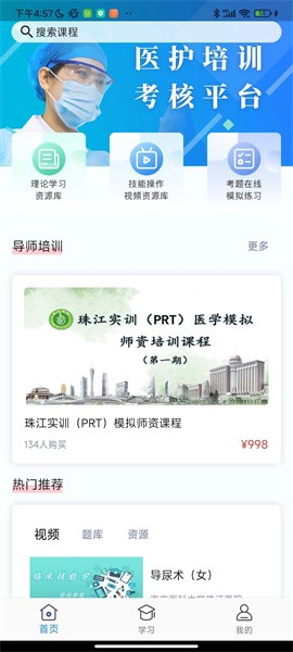 医护实训APP是一款专业的医护培训考核移动平台软件,平台集优质医学ppt课件、精短视频、培训考核、课程自建等功能为一体,不仅满足医护人员各种自我学习提升需求,同时也满足医疗机构对规范化教学管理工作的需求,让学习更轻松快乐,让管理更便捷高效,最终实现医疗质量跟医疗水平双提升。