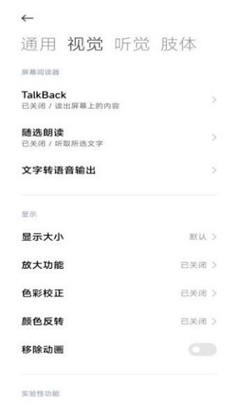 小米无障碍手机版是一款好用的听力辅助软件,不仅体积比较小巧,不占用内存,界面也清爽简洁,功能丰富强大,集视觉、听觉、肢体操作为一体,可以助力视听障碍者实现智能化操作,给人不错的使用体验,满足视听障碍的人的需要!