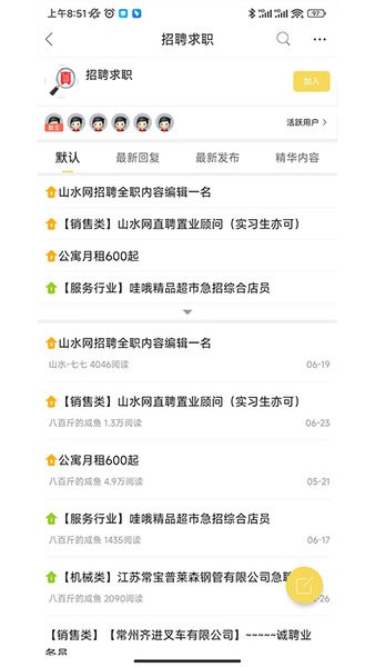 常州市金坛山水网app最新版为用户带来常州市本地的生活论坛,许多的本地信息都可以在软件之中随时进行交流,还可以在软件之中轻松的找到更多的生活资讯,无论是找工作,还是找房屋都可以轻松找到。