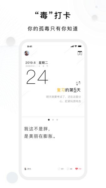 * 你每天能坚持的,也就是玩手机了。“毒”打卡,记录扎心每一天。单身,吃土,丧...就是你的小日常。