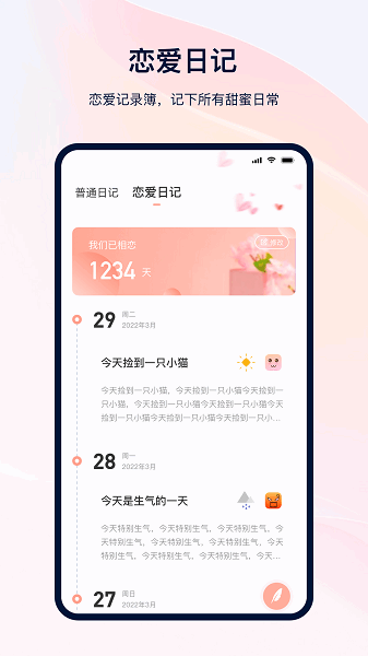 这是一款简单实用的移动版便签,它可以帮助您快速记录与分享工作任务,待办事项,学习计划,购物清单。还可以将日记区分为普通日记和恋爱日记倒数日提醒你再也不忘重要日子。懒得打字还可以录音,音色俱全,简单而有趣。让每个美好的瞬间都不被遗忘。