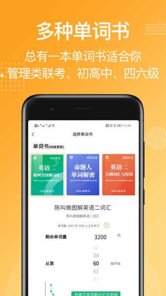 MBA 背单词是一款帮助你学习MBA考研英语二单词的APP,同时涵盖雅思 / 托福 / GRE / GMAT / SAT / CET-6 / CET-4 / 专八 / 专四单词,让你的英语水平突飞猛进。