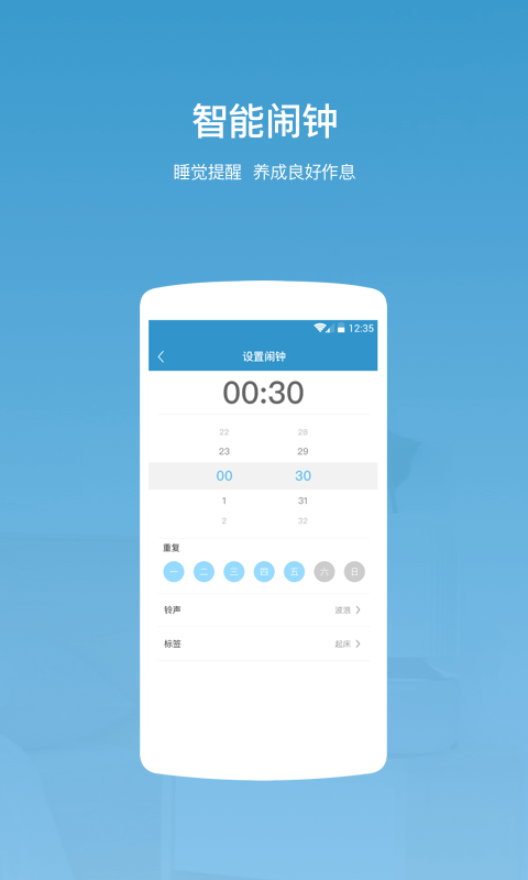 1、智能闹钟,支持您定制睡眠设置,起床提醒闹钟,养成良好习惯。