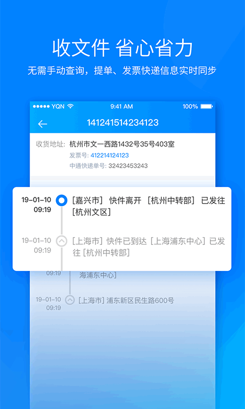 我们将提单、发票等文件的快递单号与进展自动同步至运去哪APP内,从此不必再手动查询,收文件更省心。