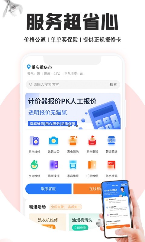 上门快修:APP在线下单极速响应,热门故障专家快修;
