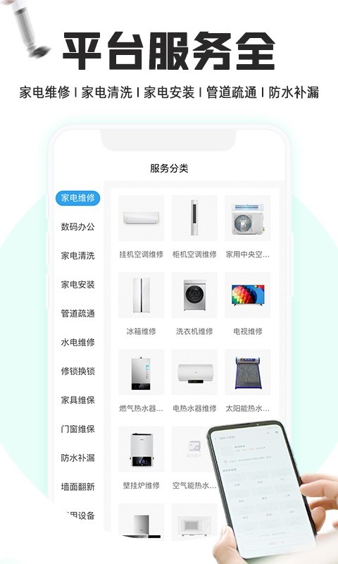 家电维修:洗衣机维修/空调维修/冰箱维修/管道疏通/水电维修/电视维修/热水器维修/燃气灶维修/油烟机维修/