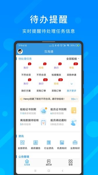 对于我来说,这种类型的工具真的很有用。传统的船舶管理需要处理大量的纸质文件和电话沟通,效率低下不说,还容易出错。而互海通app直接把所有东西都搬到了手机上,随时随地都能查看任务、联系船员,甚至还能在线询价采购,节省了很多时间和精力。