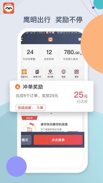 鹰明出行司机端是为司机打造的接单软件,让司机用户可以随时进行接单,无论是网约车司机,还是出租车司机都可以随时加入进行抢单,海量订单让司机更容易赚钱。