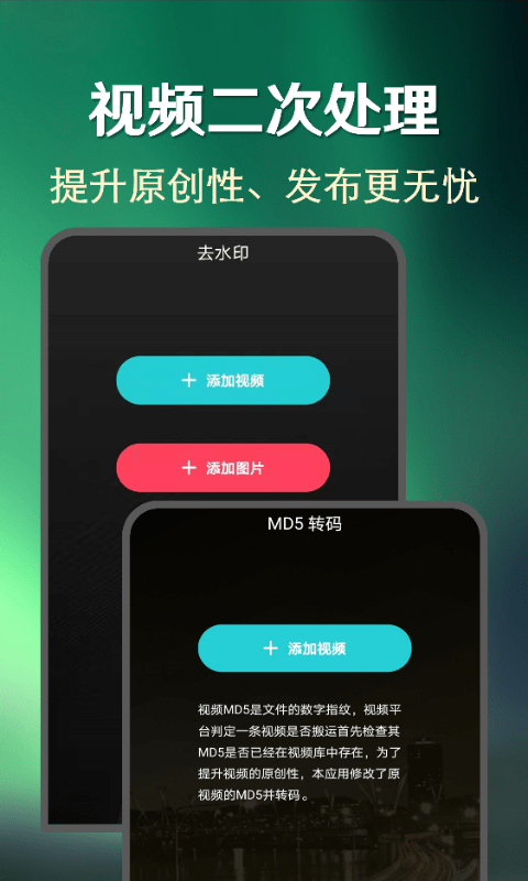 本应用提供一键提取无水印素材、批量无水印视频提取、水印擦除等各种去水印功能,还汇聚了大量的无水印品质高清素材供下载。使用本app,创作短视频再无素材去水印的困扰。