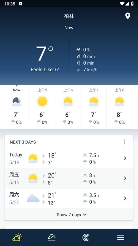 WeatherPro 是由欧洲的MeteoGroup公司开发的,在全球范围内都有覆盖。软件界面简洁,操作起来也顺手。它不仅有实时天气,还能看到未来七天的预测,甚至还能切换到卫星图层和雷达图层看更详细的天气情况。这点我觉得特别棒。