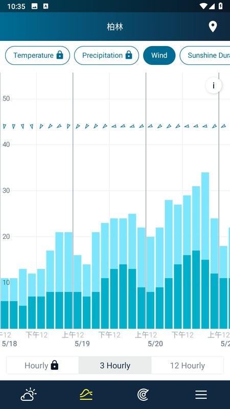 15、扩展的天气图,以简化的14天天气预报,提供有关温度,日照,雨水或降水(包括数量和概率),相对湿度和压力的每小时数据