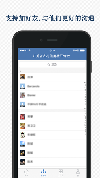 聊天记录、通讯录等数据存储在江苏省农村信用社联合社内网,安全可控