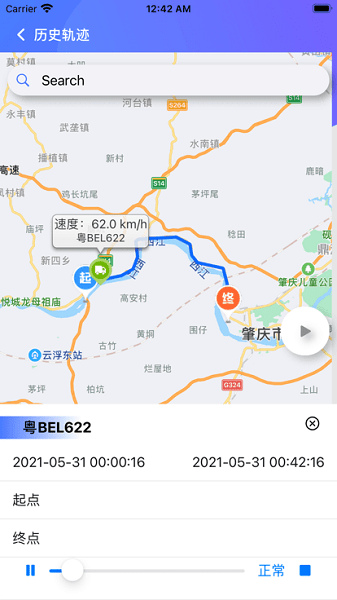 支持查看企业车辆定位信息、车辆轨迹、车载视频、里程统计等信息。