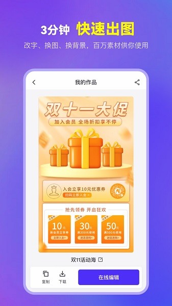 【功能强大】选择模板,替换文字和图片,即可完成各种图片设计
