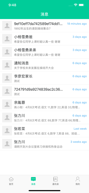 3、通讯录:系统保存所有家长、教师的联系方式。