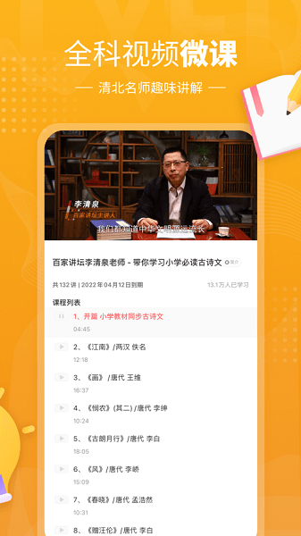 1、课程涵盖小学语文、数学、英语、科学等多个学科