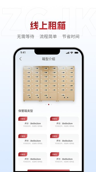 中贵金库官方版是专门提供保管箱租赁服务的应用平台,银行指定,全国连锁,安全私密,支持在线开箱、查看门店价格,详细介绍箱型,提供六种箱型任你选择,价格合理,线上租赁,无需等待,流程简单,节省时间,还提供合同管理、实时金价等服务,黄金行情资讯一手掌握!