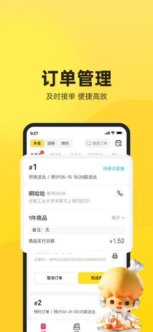 商家可以通过App完成订单管理、商品管理、活动管理、营业信息管理、账户管理等功能,简洁明了,轻松上手。