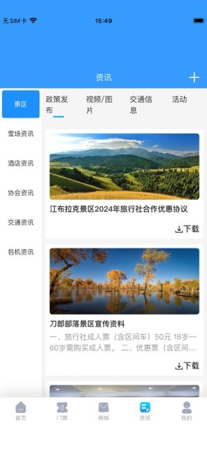 景区、雪场、酒店、协会等政策发布、视频图片、交通通信、活动资讯更新推送