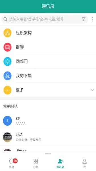用户可进入到通讯录服务页面中查找工作联系人来进行办公沟通联系使用。