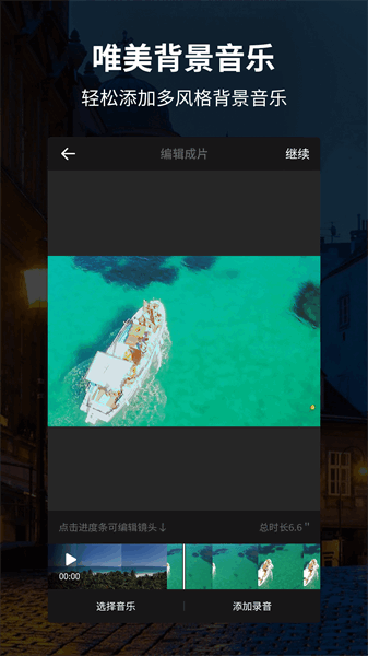 2、添加背景音乐,给视频添加自己喜欢的背景音乐