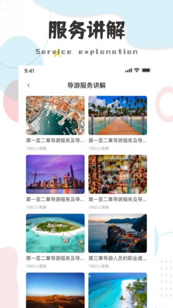 导游云课堂在线课堂平台让导游可以在软件之中随时进行学习,海量的课程随时可以在软件之中进行选择,帮助用户轻松的完成更多的导游课程进行学习,让用户轻松的进行考证。
