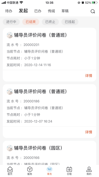 这款应用充分利用学校数据中心的资源,结合门户网站和管理系统,从教务到生活都提供了丰富的信息服务。特色功能包括首页的要闻和值班表、服务板块的学生离校申请和班车预约、事务处理的待办事项以及日程安排等实用工具。这些设计极大地提升了校园生活的效率。