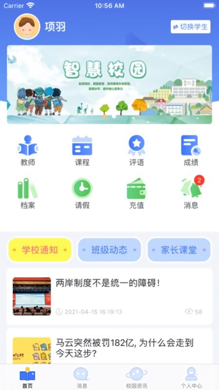 云视声家长版安卓版是主要为孩子家长提供家校共育服务的应用软件,带来学校课程安排信息可以随时了解,还提供学生成绩、档案、老师评语方便查询查看,更支持在线请假、充值,接收实时消息,掌握校园资讯动态,加强与老师的联系,一起共同促进教育孩子成长!
