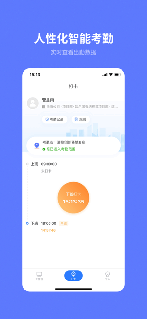 最让我觉得厉害的是它的功能特别全面。不仅可以实时查看出勤数据,还能智能审批请假和加班,流程透明,沟通高效。还有弹性考勤设置,人性化管理,感觉员工的工作体验会很好。