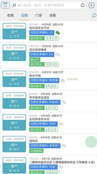 可以在这里进行相关的随访工作,与患者进行随访交流