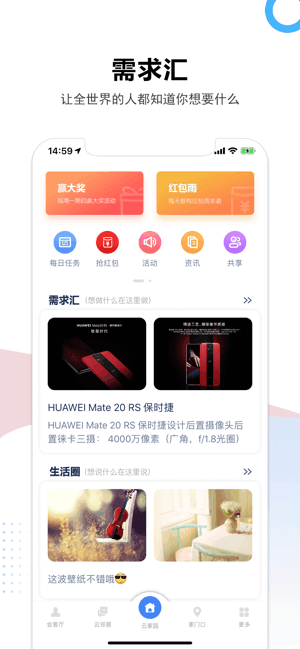这个云家园平台听起来真的很方便!它不仅是一个掌上生活服务平台,还能满足各种日常需求。比如每天的任务、抢红包、活动这些都能搞定,还有二手物品交易、共享厨房、订座吃饭等等,功能挺齐全的。