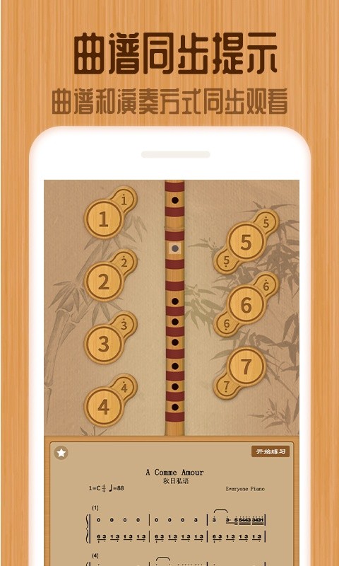 笛子APP,由国内知名音乐品牌“音约吧”团队出品。笛子入门APP!是一款支持同步学笛子曲谱的APP!