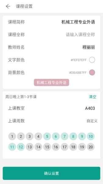 4.可自由设置每门课程的背景色和文字颜色