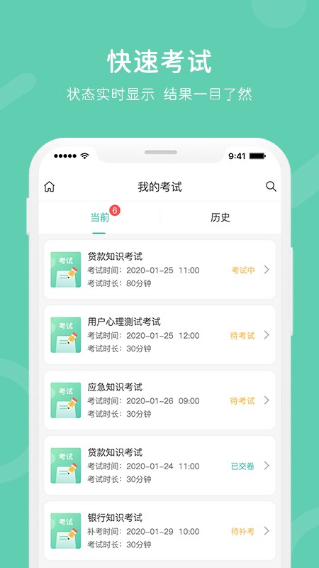 支持在线考试、查看当前待考考试及过往考试记录、作答结果、试题解析;