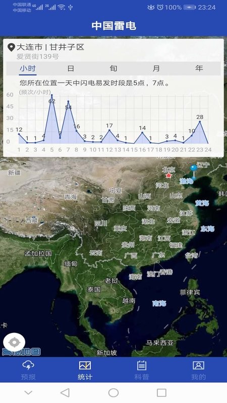 “中国雷电”手机客户端基于您的位置给出雷电实况和预报,为人员、电器、电力设施、建筑、航空航天飞行器、通信设备等的安全提供精细到分钟的气象信息服务。