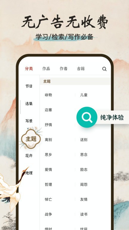 随时查看,下载就能随时查看诗词没有登录与注册。