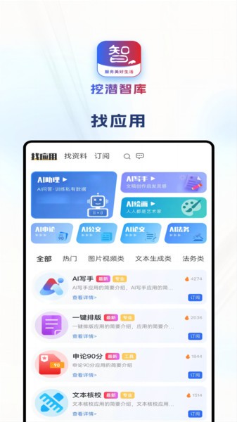 图片视频类、文本生成类、法务类应用,各种资料查询订阅