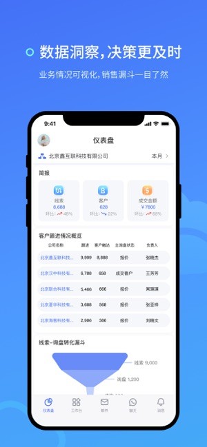 销售的专属工作台,多维度查看工作情况,轻松管理,随时掌控全局。